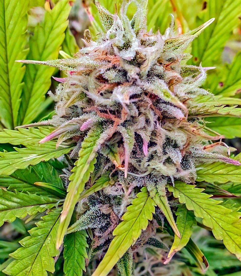 Во время цветения сорт раскрывается особенно красиво. В условиях пониженных ночных температур Mystical Autoflower нередко проявляет поразительные фиолетовые оттенки на листьях и чашечках, а слой из крупных трихом добавляет картине еще более мистического вайба.
