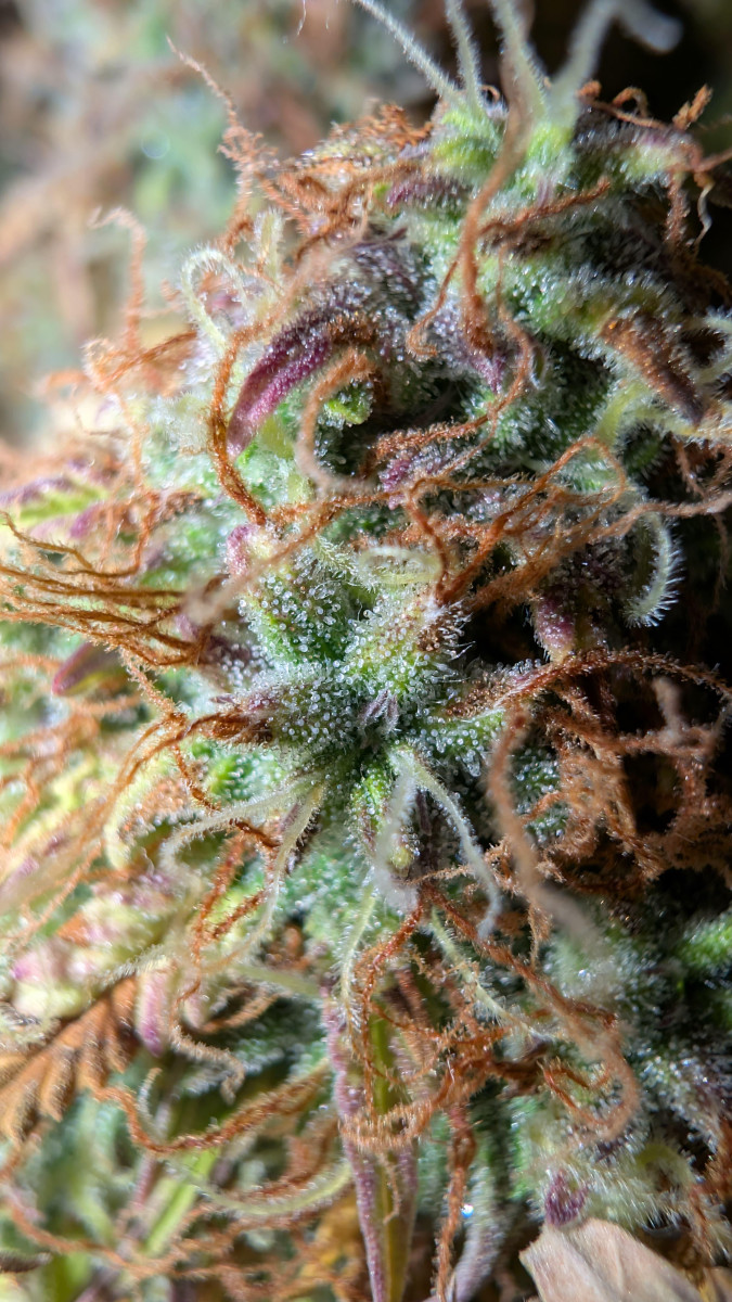 Эти девчонки не стремятся дотянуться до звезд, оставаясь невысокими. Так что они отлично подойдут для гроубокса своего размера. Соцветия очень плотные и невероятно липкие. Я выставил их на улицу на последние несколько дней в теплицу, чтобы они доросли. Холодные ночные температуры действительно вытягивают наружу много смолы.