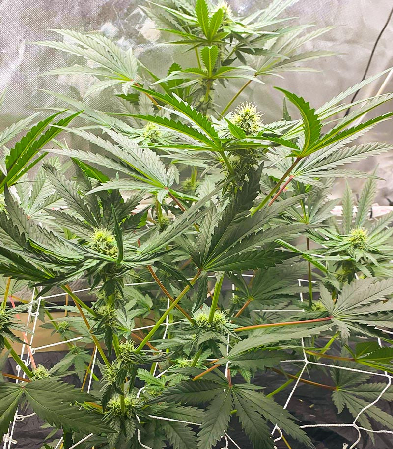 Хорошие семена, быстро прорастают. Кусты хорошо тренируются, да и надо их тренировать, а то ветки вытягиваются. Но зато и шишек много. Вегетация 7 недель, цветение 8 недель. пока цветут, то пахнут густо и не очень аппетитно. А вот готовые бошки пахнут мягко, сладковато, с оттенком топлива и сосны. Действуют хорошо, глубоко, но не сразу. Эффект начинает раскрываться только спустя минут 20, что может ввести в заблуждение и заставить добавить. И тогда может быть плохо. Надо просто подождать. И если что, то потом уже добавить.