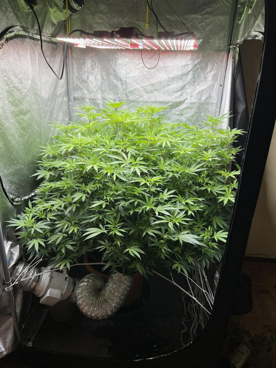 Не могу сказать, почему выбрал именно этот сорт, но, увидев, как он хорошо развивается, решил выжать из него максимум. Моя цель получить с куста порядка 450-500 грамм. Поэтому и вега была такой долгой – 17 недель. сейчас уже перевел на цветение, сформировав настоящего монстра в горшке с помощью LST, скрога и дефолиации. Растет в плагроновском грунте под диодными светильниками. И кусту, и мне все нравится. Пока никаких проблем с растением не возникало, отлично формируется и набирает массу.