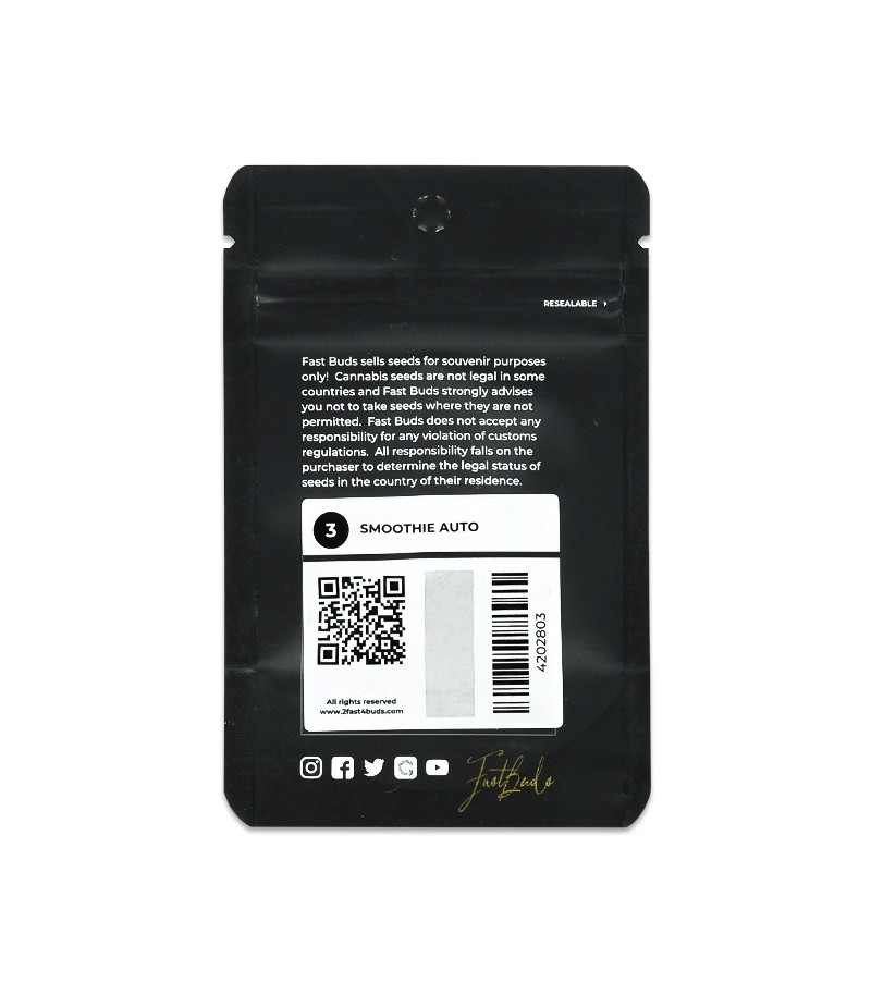 В ассортименте сидбанка Fast Buds множество превосходных сортов. Smoothie Auto – один из лучших среди всех автоцветов от этой американской компании. Гибрид был получен путём скрещивания Somango и Blueberry. Не обошлось без толики Рудералиса для придания растениям автоцветущих свойств. Сами Fast Buds заявляют, что это самый фруктовый сорт на современном канна-рынке автоцветов. Теперь у каждого гровера вне зависимости от опыта и навыков есть возможность убедиться в этом на собственном опыте, подняв кустик Smoothie Auto.