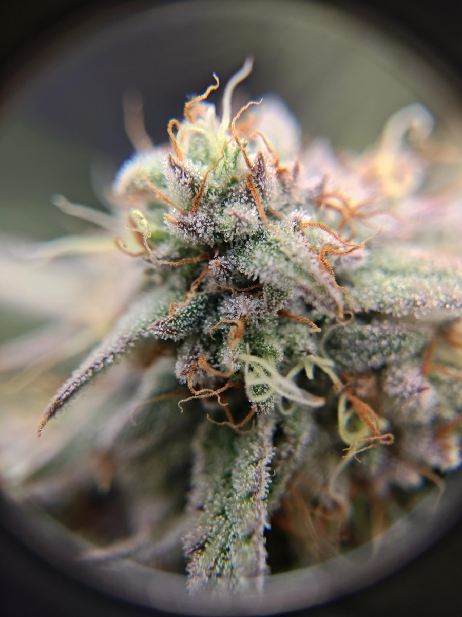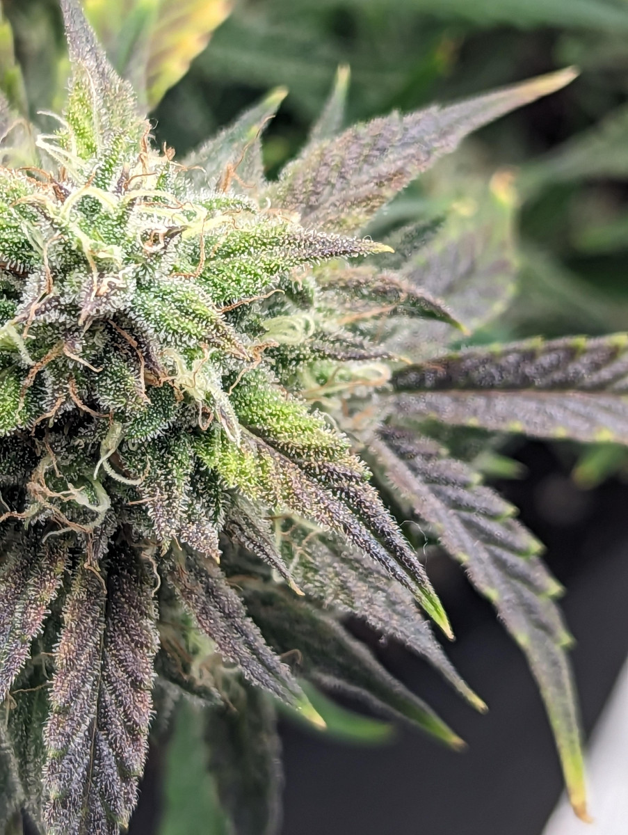 10,5 недель, мы явно на финишной прямой. И хоть горшок маловат – всего 11 литров. Но посмотрите, сколько шикарных кол и шишек для скромного по габаритам растения. И смола, смола, смола. И аромат… он немного странный, будто прогорклого сыра со сладостями, но чарующий.