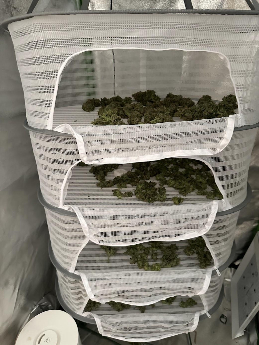 Оооо, эта штука бьет неожиданно сильно, что стало для меня неожиданностью, ведь я напортачил с сушкой и пролечкой первого растения. Оно сушилось слишком долго. Я ждал 9 дней, чтобы веточки стали с хрустом ломаться пальцами, но они так этого и не сделали. Решил все равно обрезать и упаковать в пакеты на пролечку. Было 44% влажности. И еще было много липкой канифольной пыли. Но урожайность у этого растения была потрясающей,