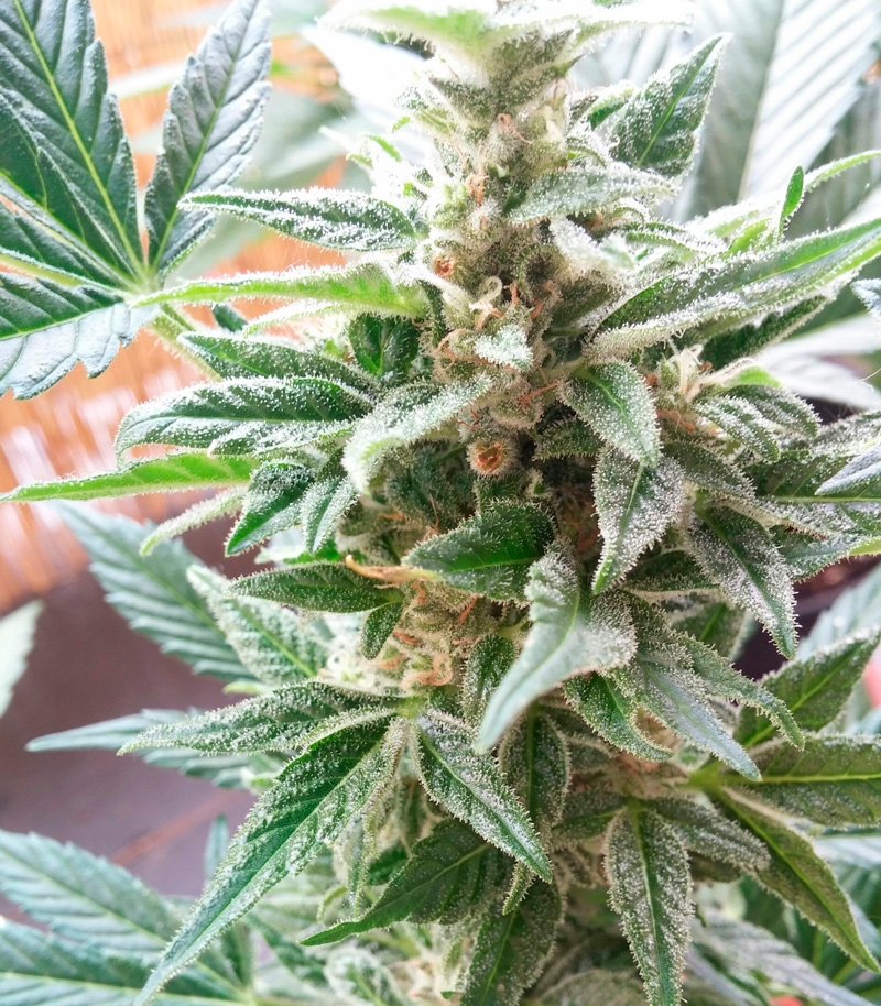 Во время цветения отчётливый лимонный аромат напоминает о корнях – Lemon Haze прямой родитель сорта. Особая черта данного штамма – нежные, матовые, почти бархатные листья с крупными кристалликами трихом.
