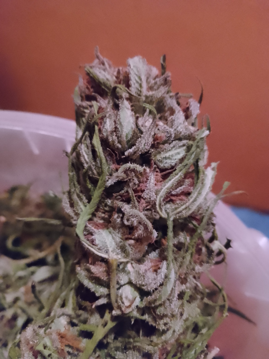 Очень понравился сорт. Полтора месяца веги и 60 цвета ,350 лед, быт нейтральный 4к+105 эсл тёплый, трихомы матовые -(принципиально). Эффект аж губы немели по началу расслабляет тело ?,убирает боль в ногах. Ну и запах у неё-просто нечто, сьесть охота