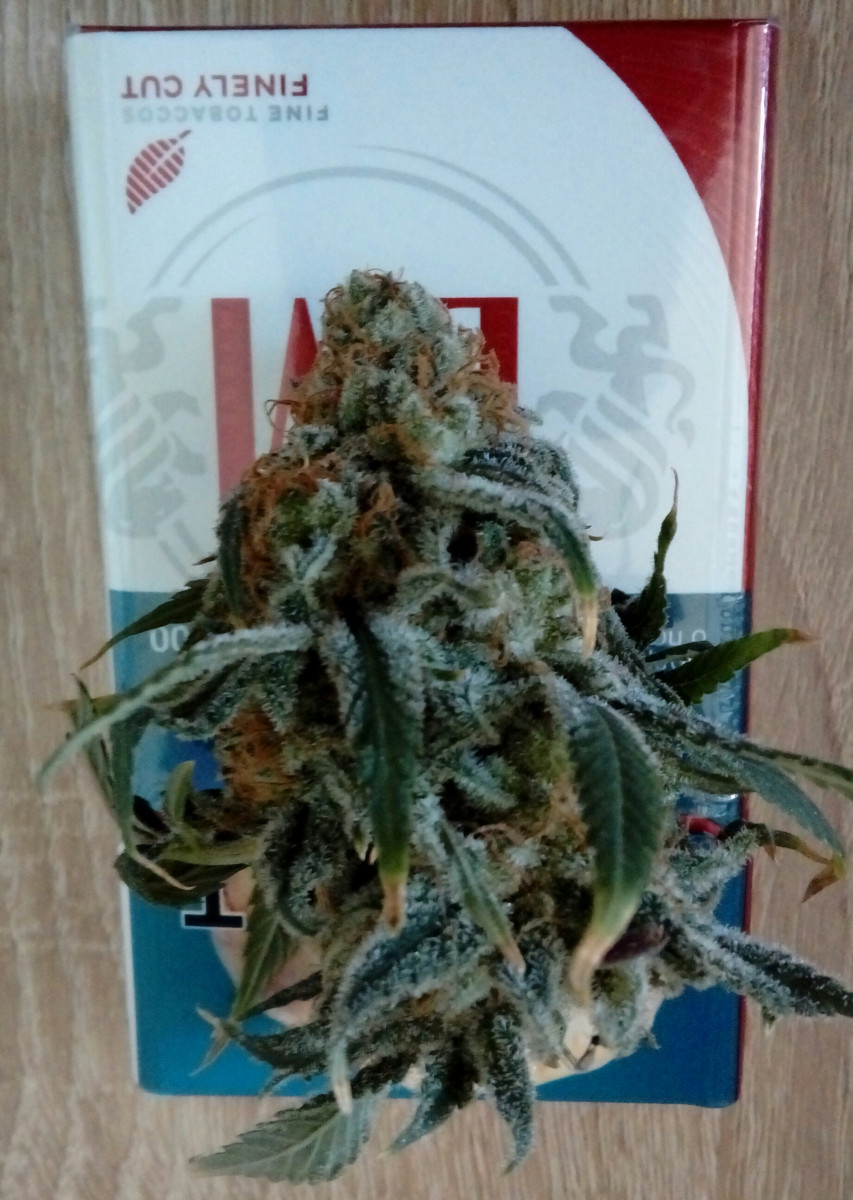 Всех Приветствую. Один из лучших, в моем топе. Урожайный, много смолы, быстро отцветает-как по паспорту, эффект как в описании. В ауте высаженные 3 недельной рассадой. В середине апреля успевает к 15, 20 октября в средней полосе. Поднимал не раз. Клонируется отлично в грунте роза - лимон- перлит. В индоре занимает бокс 1 * 1 * 2 при вегетации. 2 мес.на цвете и не много увеличивается в росте. Очень красивый в цвете. Стигмы очень густо, плотно растут, трихомы начинают появляться сразу ещё на предцвете. Перед харвом это вообще красота .Свет в индоре на куст 600 лед, быт 4Кельвин (нейтральный) весь гров. Понимал и на днат 250 + ват 300 лед быт по кругу 4 Кельвин. Разница: с днатом чуть дольше вызревает, недели на полторы. Грунт всегда: роза лимон, перлит, вермикулит, конский или куринный перегной в перемешку. Пш на выходе с дренажа 5,5-6,5 бывают редко отклонения - регулирую зольным поливом, либо лимонной кислотой в ту или др.сторону.