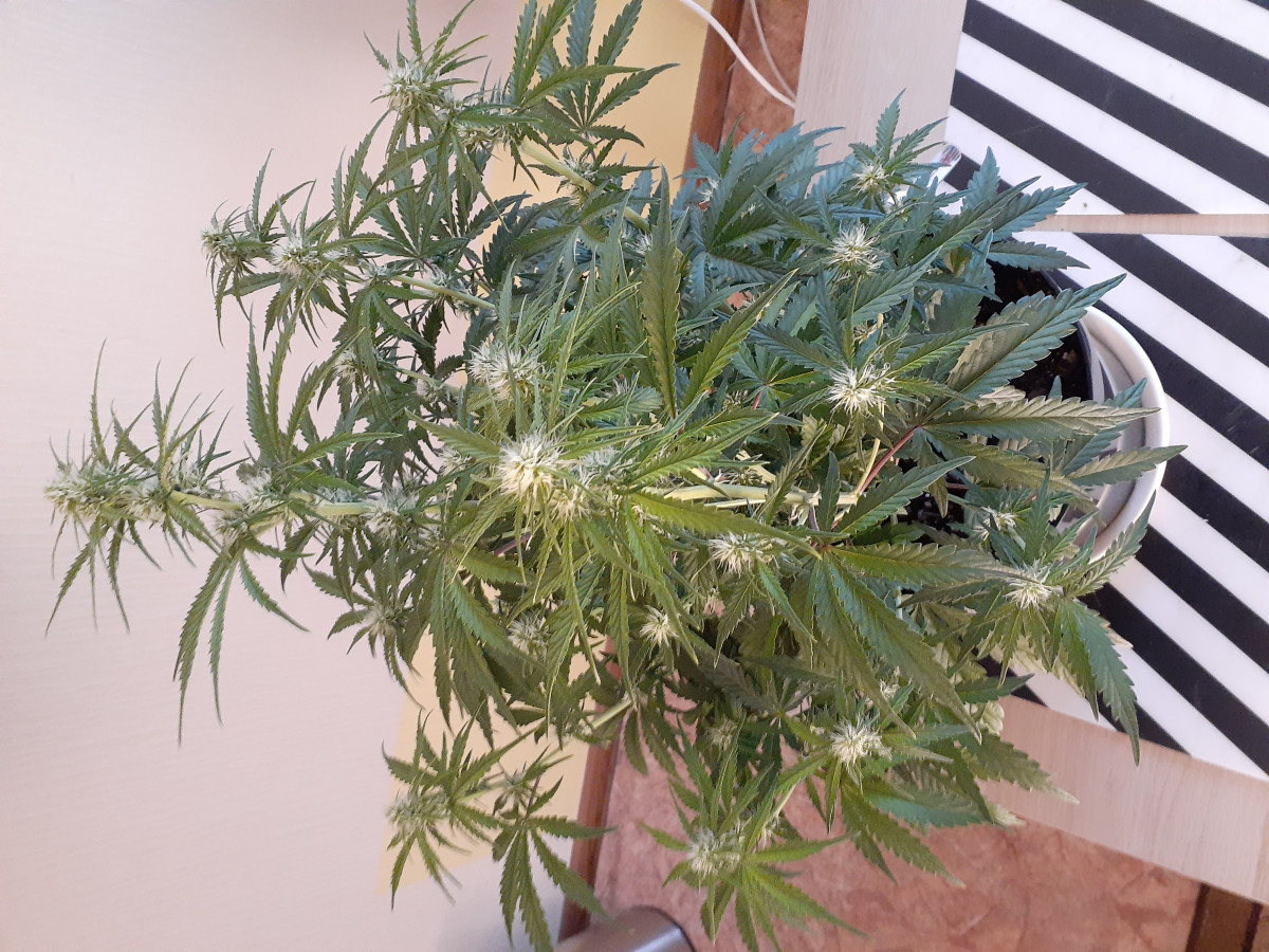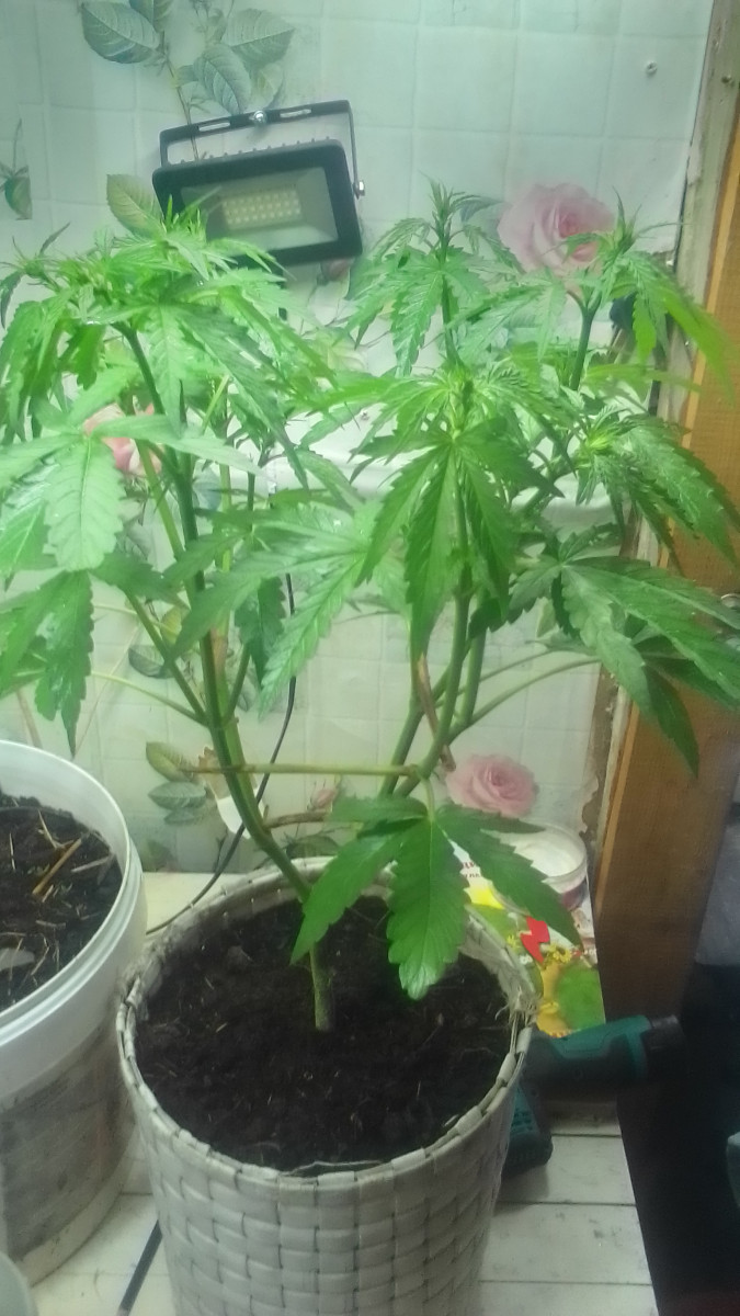 Фотки плохие получились. Вообщем мне их бонусом прислали. Один другого больше раза в три по причине того, что мелкий цвести раньше начал, а я уезжал на неделю и не успел подрезать как надо. На фотке им 6 недель. Маленький зацвёл ровно на 4 неделе, а тот, что больше только вчера начал цвести. Тот что 2 недели цветет, уже стриг. Накрыло не сильно, но держало часов 5. Выращиваю в горшках на улице, домой забрал, дожди неделю идут, тот что больше, думаю, хороший получится