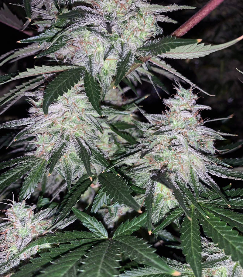 В период цветения куст формирует огромную центральную колу, а также несколько второстепенных, полностью усыпанных соцветиями. Урожайность гибрида в открытом грунте достигает показателя в 400-600 г/куст, в закрытом – 500-700 г/м2. В помещении период цветения длится 7-9 недель. Производитель рекомендует собирать урожай в конце этого срока, чтобы гровер мог получить полный терпеново-каннабиноидный профиль.