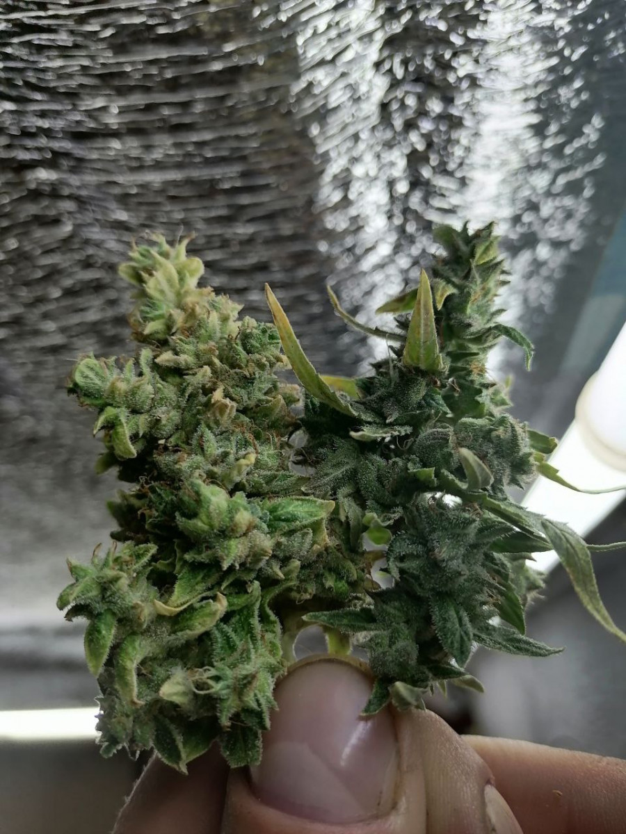 Пока не попробовал, но с 2-х растих вышло 375г сухого веса, даже больше чем обещает производитель. Один выше и худее, другой ниже и шире. Плотнейшие и вонючейшие цветы))