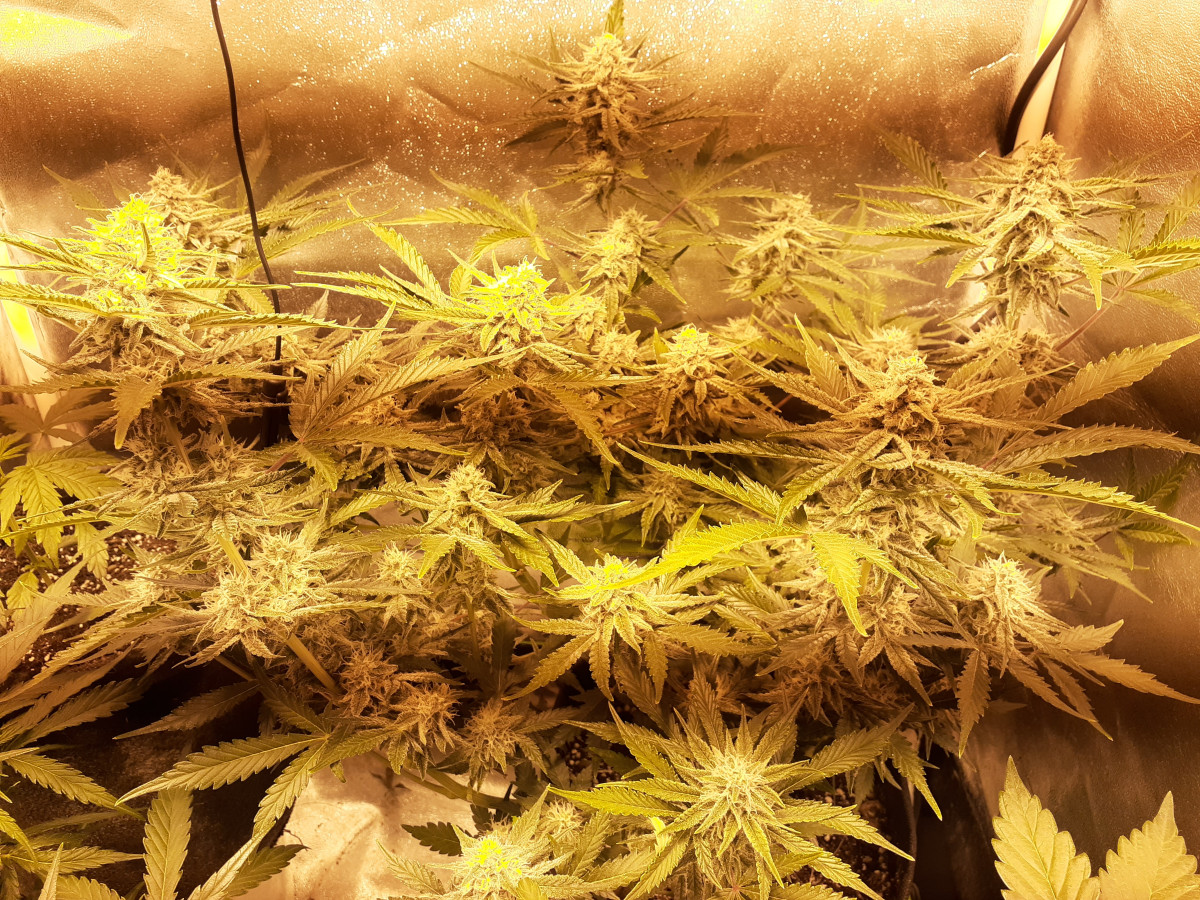 Это самый мощный в плане каннабиноидов автик, и один из самых урожайных. Поливал умеренно, а вот с подкормками возникли проблемы. Кусты вегу прошли хорошо, но позже, на цветении, стали выказывать признаки недостатка питания. Кормил в половину дозы. Добавил. А они немного стрессанули. У меня опыта не много. Поэтому лучше, конечно, понимать признаки дефицита. Думаю, я мог бы получить более обильный урожай, если бы не стрессанул растения.