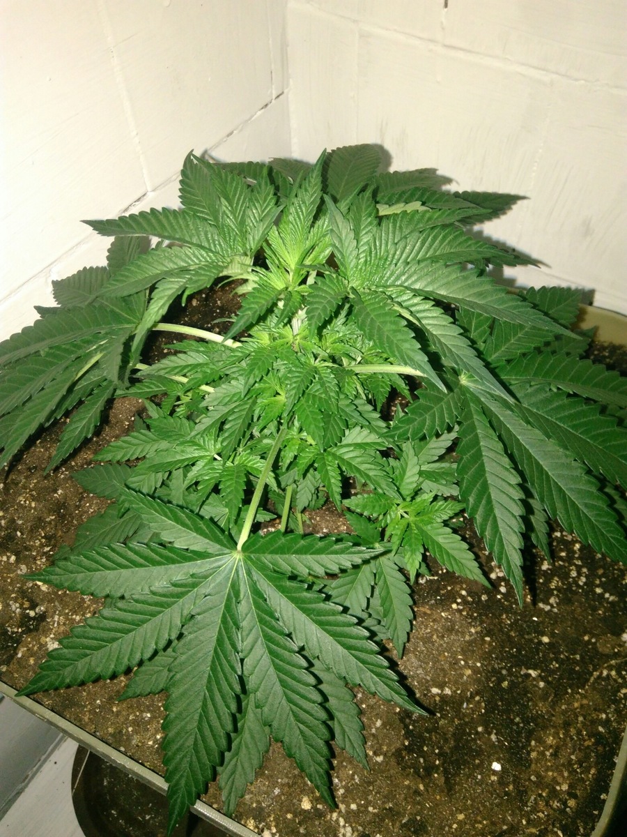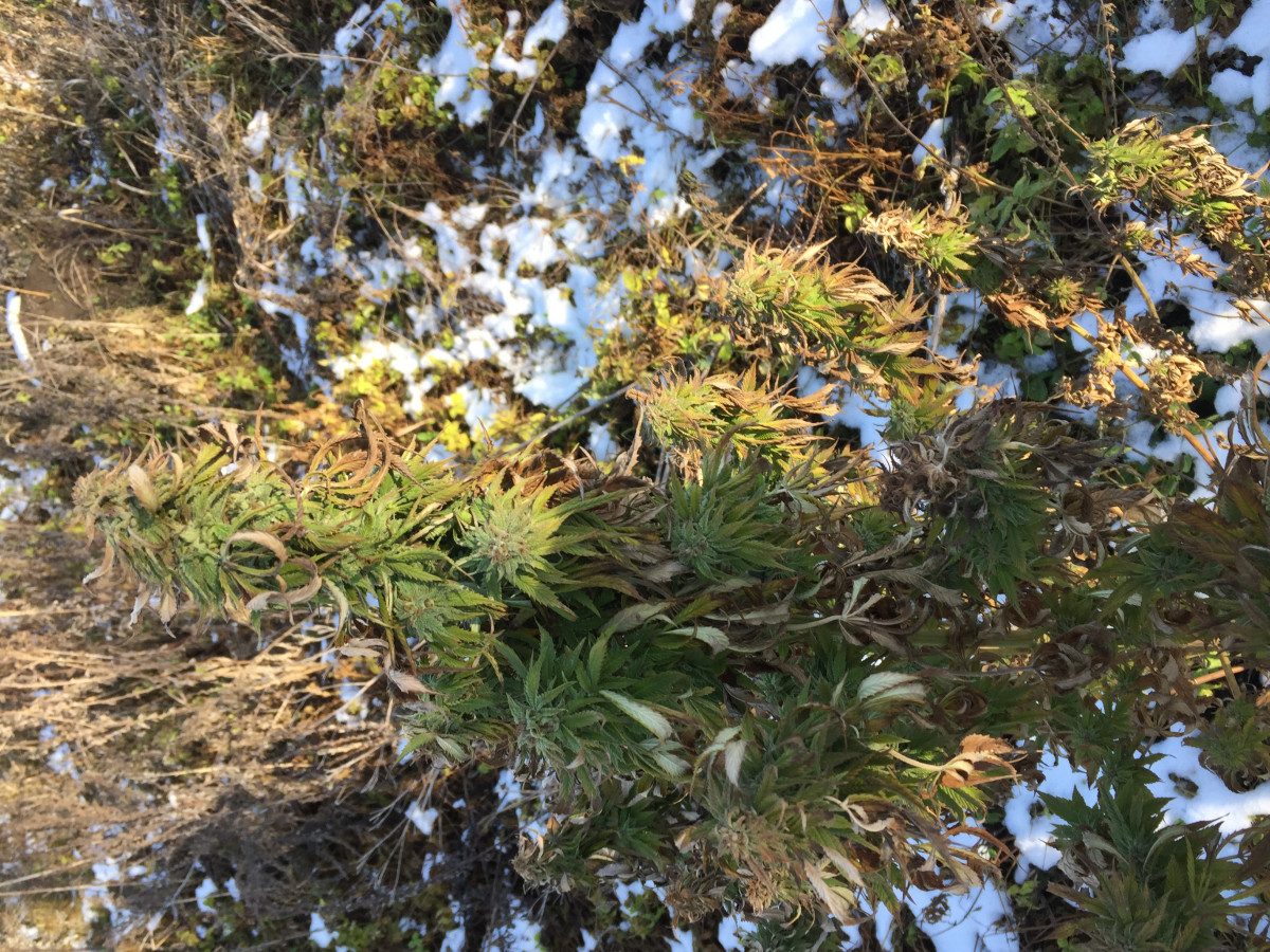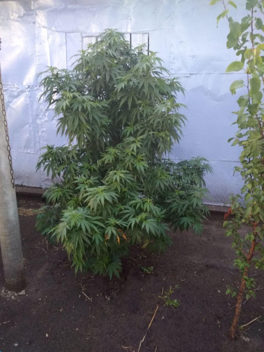 Не знал, что ствол у основания может быть толщиной с полтора литровую бутылку из под газировки!!!!!!!Сейчас 17 октября, ещё сидит в земле, местами пошла плесень, к сожалению зреть ему до кондиции ещё месяц.. но это не реально(((( от ветки до ветки ширина 4!!!! метра... Зацвёл 15 сентября... И за это время полувызревший, на глаз он даст килограмма 3 сухих шишечек!!!! Вообще не, не знаю,или с генетикой так повезло, или ещё, чего , но он просто огромныыыййй!!!!!По эффекту через месяц цветения: 7 из 10 баллов.