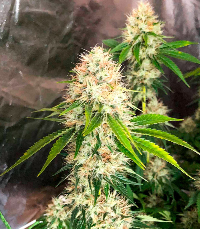 Немногим сложнее ухаживать за этим крепким гибридом в закрытых пространствах. Вырастая до 90-160 см, растения формируют большое количество ветвей с искристыми и тяжелыми бутонами. Чтобы пышная листва не мешала свету проникать к соцветиям, не стоит пренебрегать дефолиацией. Также сорт хорошо реагирует на обрезку нижних кол, направляя все свои силы и ресурсы на развитие жирной верхушки.