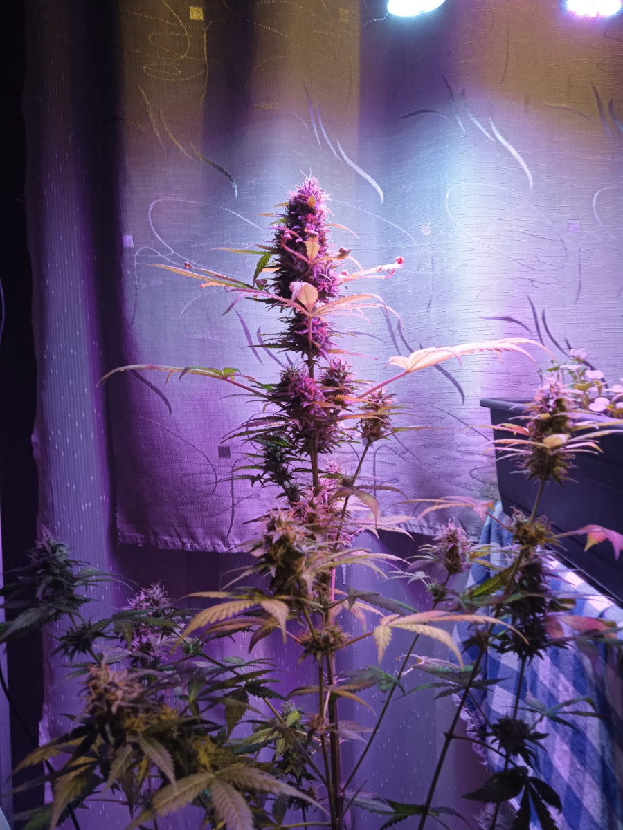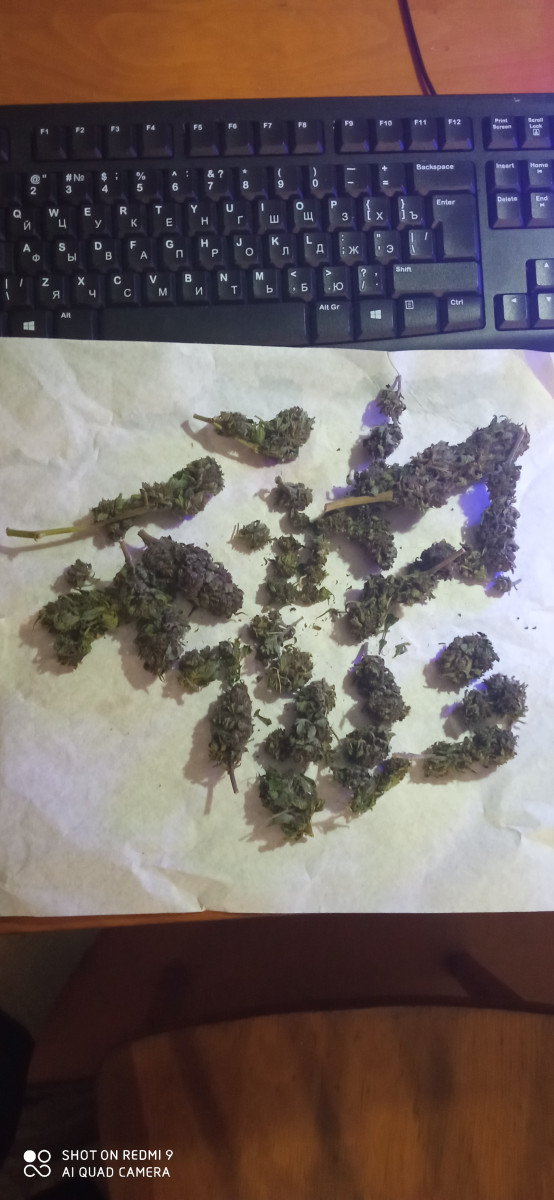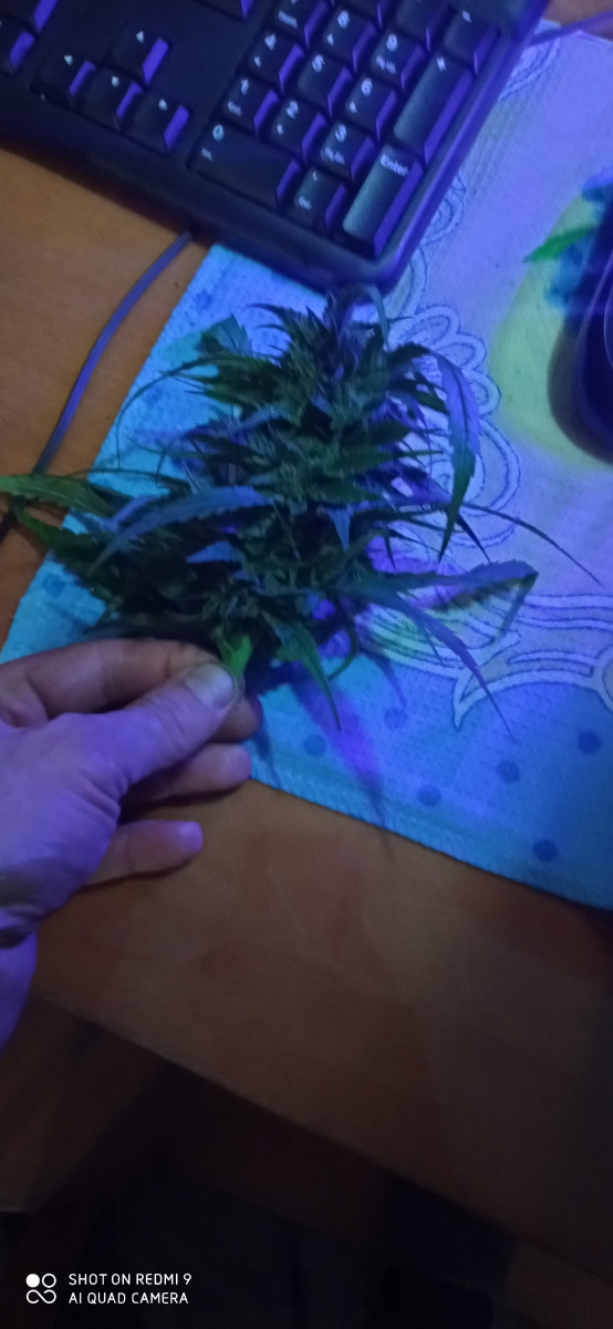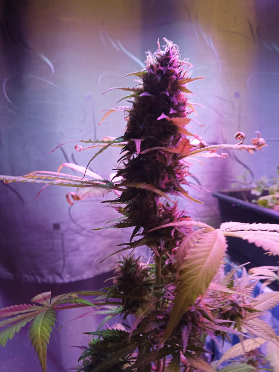 Неубиваемая. На веге была практически уничтожена. Пересадил в аут в апреле голый стебель и уехал... Приехал в сентябре, она только зацвела (на фото), срезал в конце октября, все это время дербанил потихоньку, поэтому выхлоп небольшой. Убойная, не прихотливая... Толер приходит очень медленно.