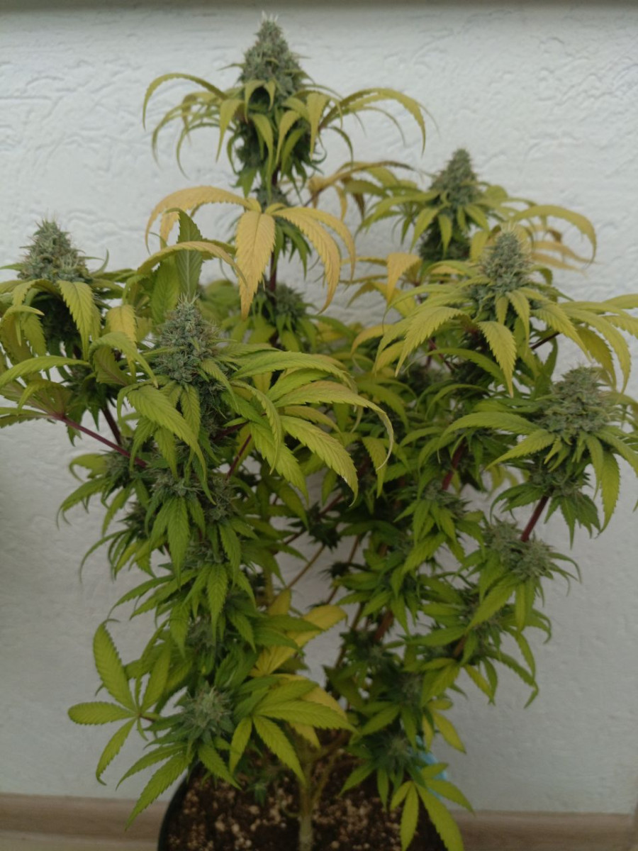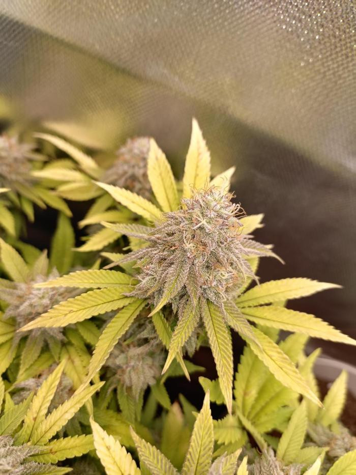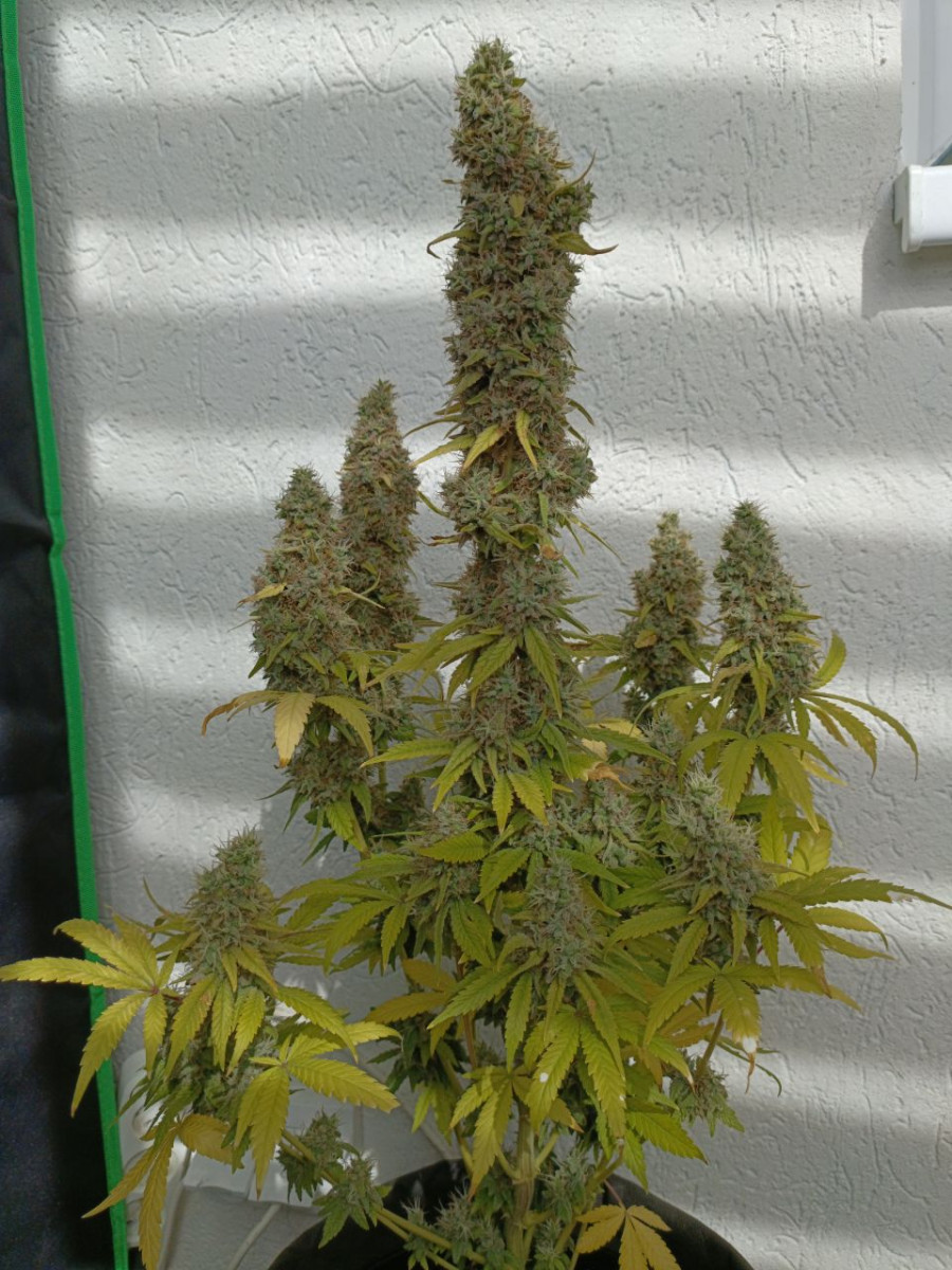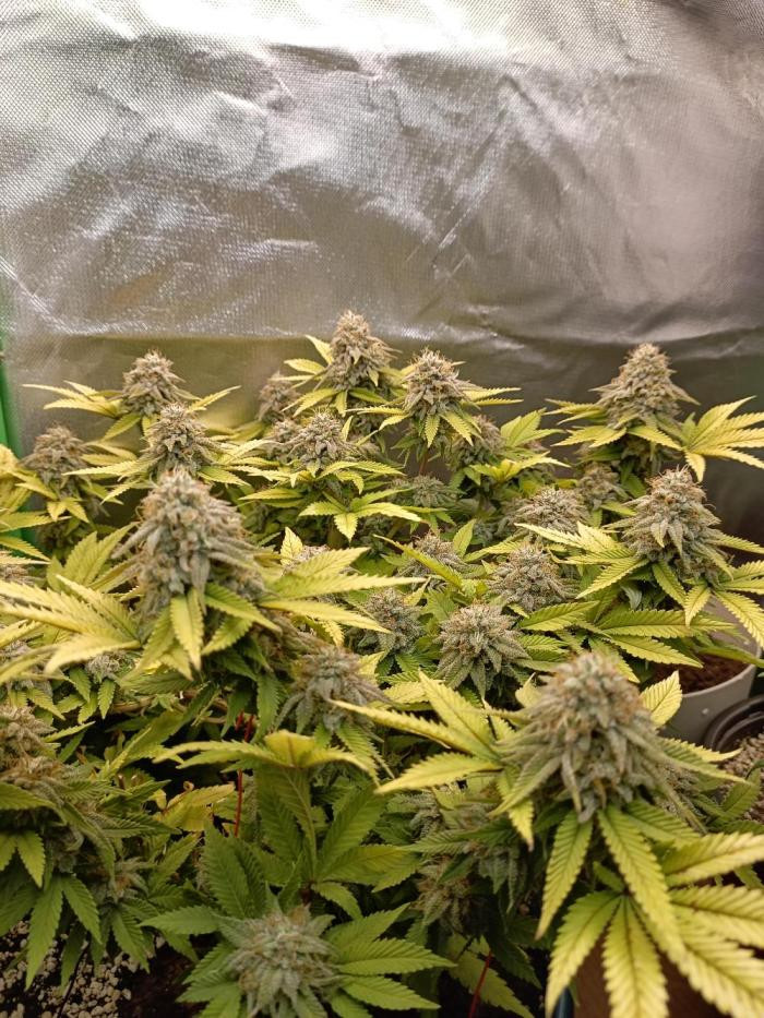 50 дней цветения, растет как на дрожжах, удобрения кушает много, запах на данном этапе переходит с более лимонного на более афганский,буду держать как по паспорту, а далее увидим.