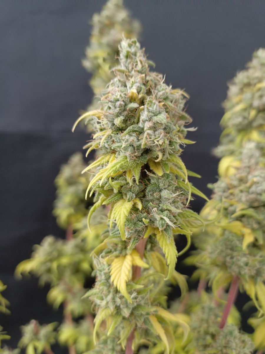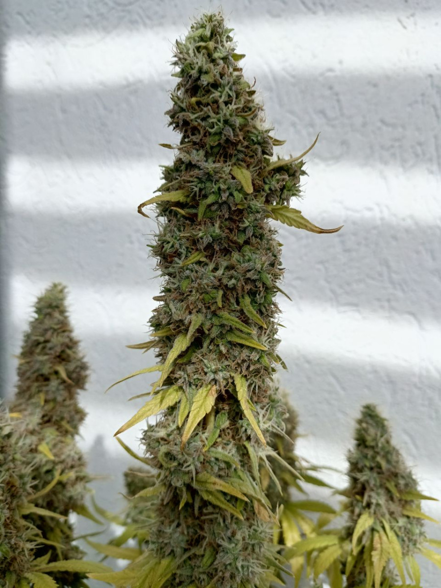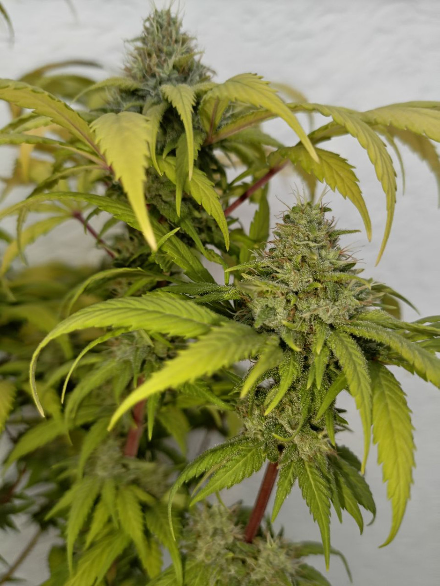 50 дней цветения, растет как на дрожжах, удобрения кушает много, запах на данном этапе переходит с более лимонного на более афганский,буду держать как по паспорту, а далее увидим.