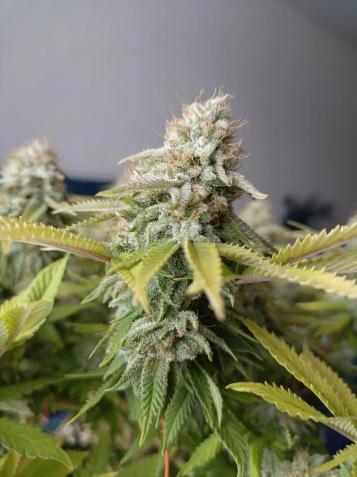 На фото 45 дней 12/12,крепкая ёлка с тяжелыми шишками )), аромат цитрусовый на весь бокс, ближе к завершению цветения аромат усиливается без угольного фильтра не обойтись в индоре, GHS порадовали будем брать еще.